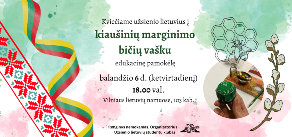 Kviečiame užsienio lietuvius drauge ruoštis artėjančioms Šv. Velykoms! Kiaušinių marginimas – ypatingas ritualas, po trobą pasklidęs šildomo bičių vaško ir žolynų kvapas anuomet sukviesdavo prie stalo visą šeimą, o rankoje laikomas kiaušinis – visatos ir gyvybės simbolis, į kiekvieno širdį atneša naujos pradžios viltį.