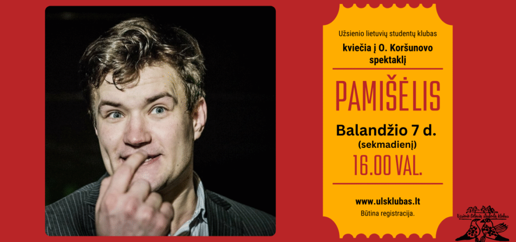 Užsienio lietuvių studentų klubas kviečia į spektaklį „Pamišėlis“.