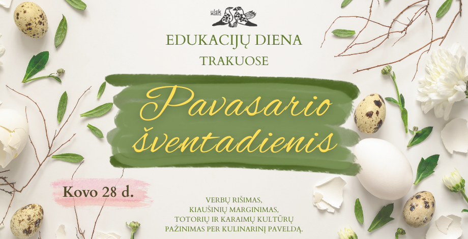 Kovo 28 d. (šeštadienį) turėsime visos dienos išvyką į Trakus – Pavasario šventadienis! Mūsų priešvelykinė išvykos esmė – prisiminti Verbų sekmadienio ir Velykų tradicijas, todėl edukacijų metu kiekvienas nusipinsime savo verbą ir nusimarginsime kiaušinius bičių vašku. Na, o kadangi aplankysime Trakus – Lietuvos Didžiosios Kunigaikštystės širdį, čia mūsų lauks ne tik pažintinis pasivaikščiojimas, bet ir susitikimas su totorių bei karaimų kulinarinėmis tradicijomis. Labai kviečiame prisijungti!